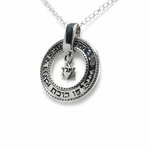 Silver Hoop Necklace with Protective Prayer and Star of David