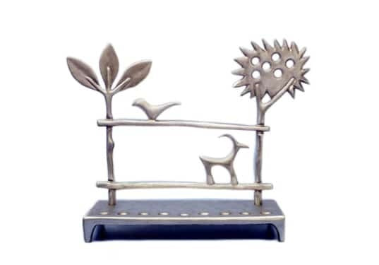 The Land of the Deer, Olives and Dates Menorah Made of aluminum casting, designed by the artist Shraga Landesman