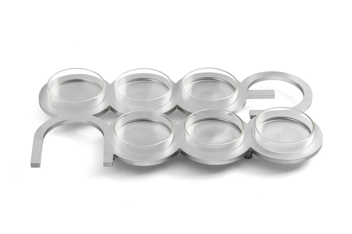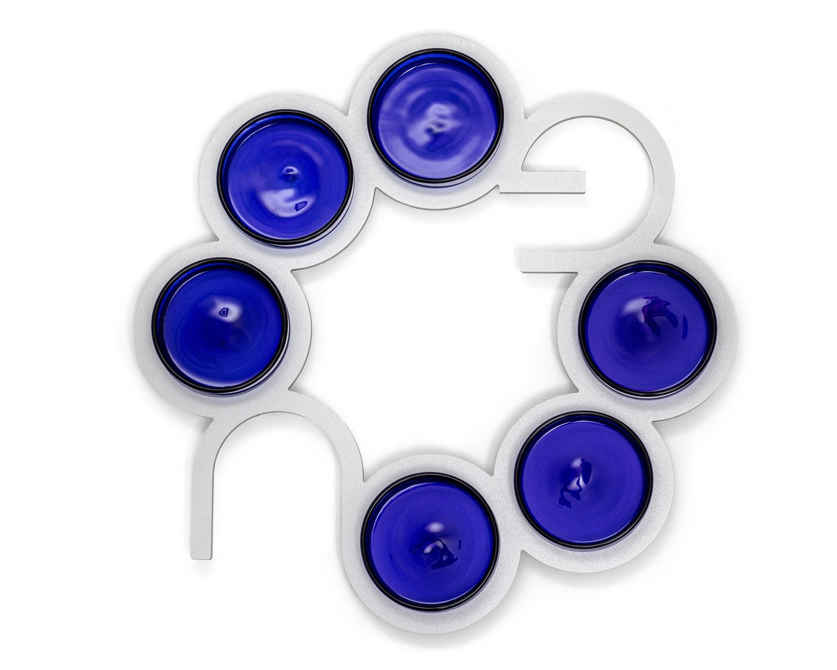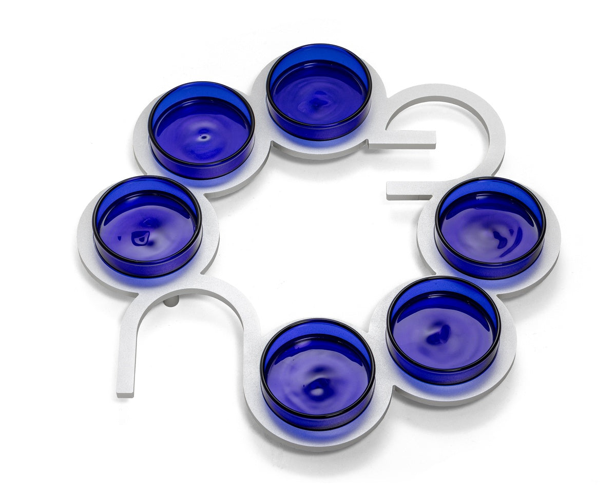 Anodized Aluminum Seder Plate Designed by the Israel Museum and Arik Weiss Celebrate the Passover tradition with this exquisite Seder plate, expertly crafted from anodized aluminum. A collaboration between the Israel Museum and renowned artist Arik Weiss, this stunning piece incorporates the Hebrew word “Pessach” into its design, embodying the spirit of the holiday. Its sleek, minimalist aesthetic adds a refined elegance to your Seder table, seamlessly merging tradition with contemporary artistry.