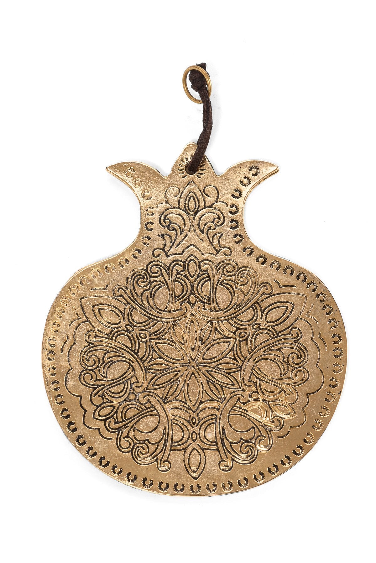 The original object was made in Tetuan, Morocco, in the early 20th century, and belongs to the Feuchtwanger Collection, purchased and donated to the Israel Museum by Baruch and Ruth Rappaport, Geneva. The pomegranate is one of the seven species with which the land of Israel was blessed. Because of its large number of seeds, the fruit was seen as a symbol of abundance and fertility, and its beautiful shape made it a popular ornament on houses, vessels, coins, garments, etc. Its importance in antiquity is evidenced by how frequently it appears in art of the ancient Near East. Many vessels shaped like pomegranates were found in temples and tombs across the land of Israel, and they are therefore believed to be cult objects.