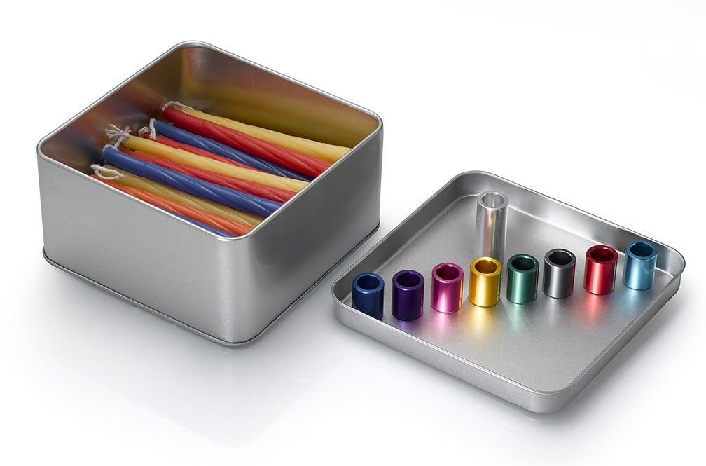 What’s in the Box? A Magnetic Menorah! Choose your preferred arrangement and use the included candles. You can even flip the box and place the candles on the back—now that’s what we call thinking outside the box!
