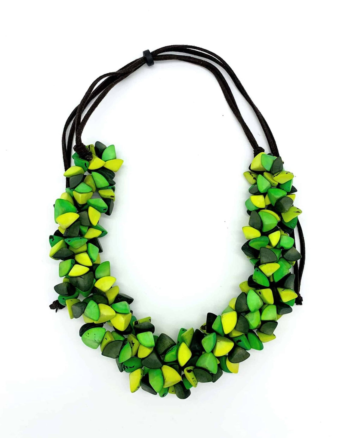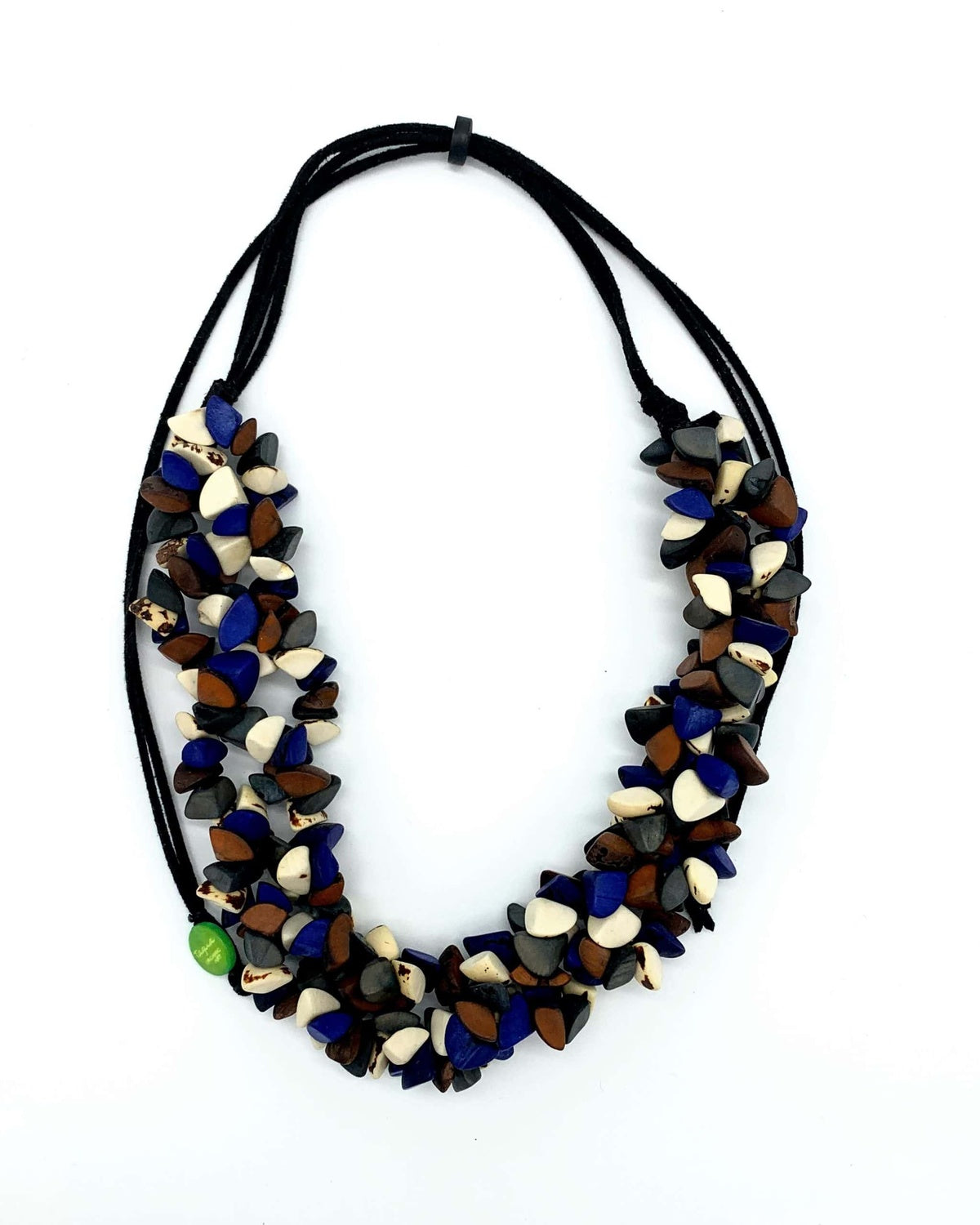 Quarter-halves of the round bombona fruit are individually dyed and drilled, resulting in a necklace that is visually rich and captivating. The length of the necklace is adjustable to suit your preference. If you haven’t found your desired color among the options above, feel free to contact us—we’ll gladly offer additional colors from our wide inventory. Tagua The Tagua Organic Jewelry studio was founded by Ofri Friedman in 2009. She creates jewelry from tagua, the nut of a palm tree that grows in South America, as well as other fruits and seeds—such as the South American bombona, the kukui from the Philippines, and chira from Peru. Thanks to her use of natural materials, the shapes and textures of Ofri’s jewelry components are always unique. The production process is carried out in collaboration with Beit Ekstein, involving individuals with special needs.