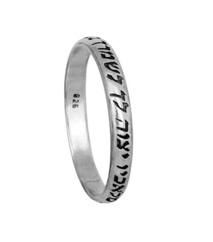 Delicate silver ring engraved with the words "Ki Mal’achav" – a symbol of protection and divine guardianship.