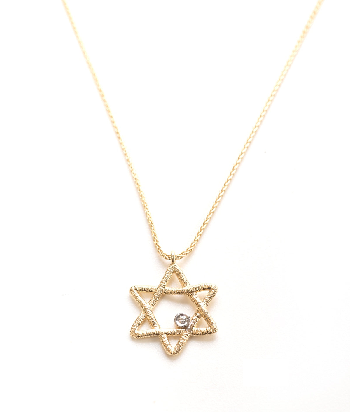 In recent centuries the Star of David has become the symbol most identified with the Jewish people and eventually also with Zionism, and can be seen in the decorations of many religious objects and buildings. A knitted Star of David necklace and diamond, a gift that will delight every heart!