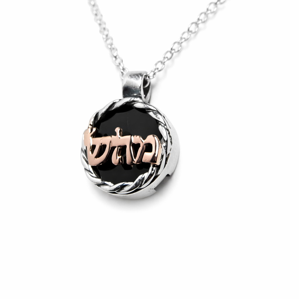 Silver Necklace with Onyx Stone and “Mahash” Gold Letters