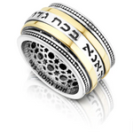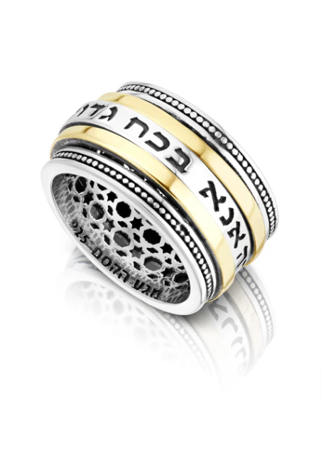 Silver spinning ring made of sterling silver combined with 9K gold, engraved with the “Ana BeKoach” prayer.