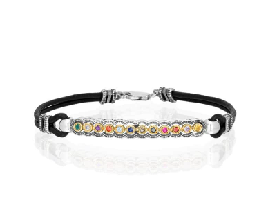 “Anel” Hoshen bracelet set with 12 Hoshen stones, made of gold and silver combined with leather.