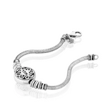 Silver bracelet combined with a decorated head and the combination A.L.D — one of the 72 Divine Names, known as a protective combination against the evil eye.