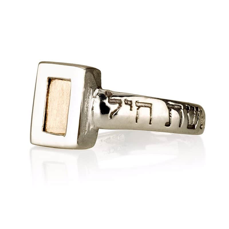 14K gold, 925 silver. Engraved on the ring is a psalm "Soldier's wife" A soldier's wife with the caption "A soldier's wife who will find her" - the sentence is taken from a psalm that a man says to his wife. The psalm speaks of the ideal Hebrew woman who works hard and cares for her family members, and in this psalm she is praised for being a devoted and loving woman. The five metals gold and silver, copper, tin and lead are the five metals from which the famous Kabbalah jewelry and the effective amulets that work on extremely high spiritual frequencies are made. We will create the amulet you need in the five-metal jewelry especially for you in a way that combines the unique properties and virtues of each of the metals for fulfillment and the flow of abundance into your life.